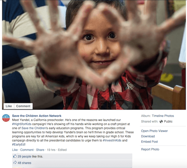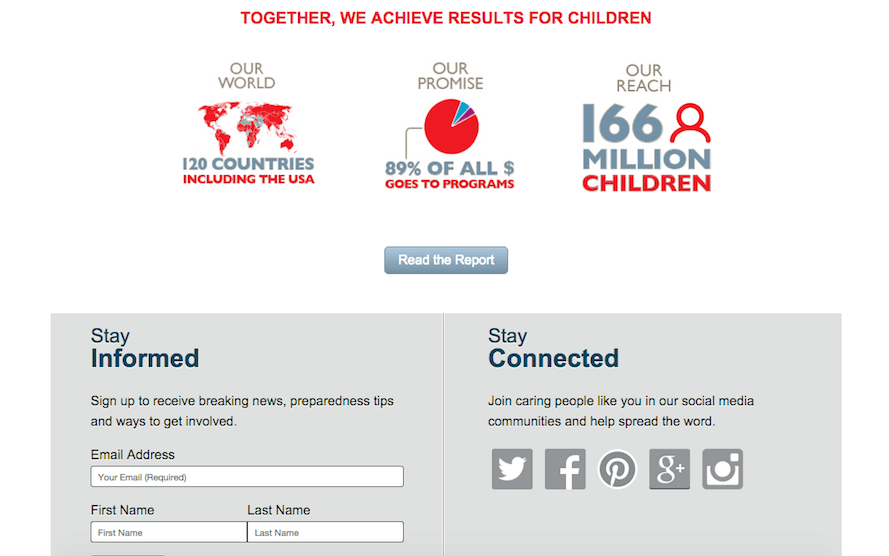 To start, Save the Children’s social media following has increased from zero to nearly 3 million and has funded more than $20 million of its programs through fundraising. A closer look at their website and social networks reveal some of the innovative tactics.