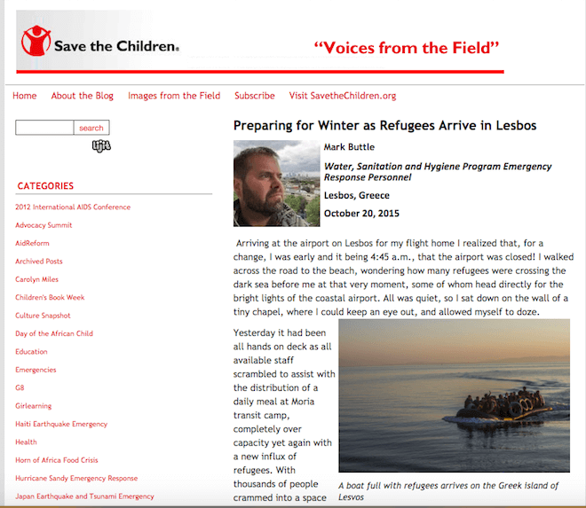 Blogging: The blog at Save the Children is full of stories and updates, all revolving around their mission but from various viewpoints. Featuring “Stories From the Field” (shows what their charity is doing from the perspective of a real volunteer), recent announcements in their realm (responding to relevant matters in a timely fashion), and numerous other engaging stories.